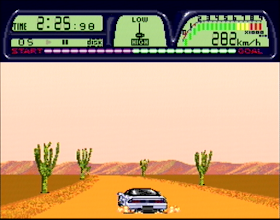 Outrun is also better than Road Spirits in practically every way. Where Outrun's stages are full of obstacles and other objects, Road Spirits' stages are sparsely decorated with a few signs or trees here and there, making them feel empty and lifeless. Also, Outrun is a challenging game, in which you try desperately to reach checkpoints before running out of time, and trying to pass other vehicles without hitting them to score the most points, while Road Spirits has absurdly generous time limits you'd have deliberately try to fail, and the very few other cars you see on the road don't really serve any purpose at all. The one point Road Spirits has over Outrun is that it takes advantage of its format, having a full CD quality soundtrack with ten songs. So, it's a clear case of quality over quantity right? Anyone would choose Outrun over Road Spirits, even though Road Spirits is a much longer game from start to finish.