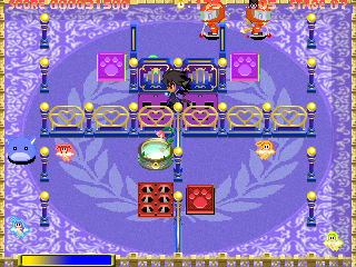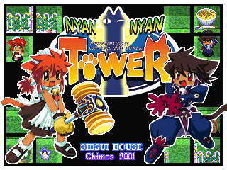Nyan Nyan Tower would be a pretty great game if it weren't for two problems. The first is that it's really, really slow. I'm sure it's not a frame rate issue, since all the sounds seem to be playing at the right speed, plus I'm sure my computer, which can emulate the Dreamcast and PS2, should have no trouble keeping up with a 2D indie game from eighteen years ago. But even though Nora moves slightly faster than Ziam, they both still feel like they're wading through treacle the whole time. The other problem is kind of related, and it's that the game is just too easy. Even if you play for score and go around collecting the fairies on each stage in order, you'll get more than ten stages in before you lose a single life. In fact, it's so easy that I've yet to have the patience to play an entire credit of it yet: I get bored and give up long before I'm in any danger of running out of lives.