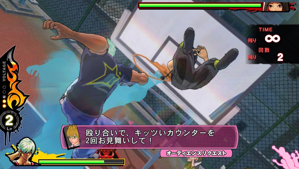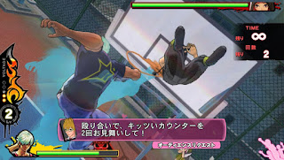 As well as the regular beat em up stages, there's some stages where you race another cargirl around a track. These are surprisingly straight-laced and down-to-earth. The only real deviation from a normal racing game in these stages is that you have a boost that's charged by driving through the small groups of enemies dotted around the tracks. It's okay, but nothing special, and very very easy once you've figured out that running over bugs charges your boost.