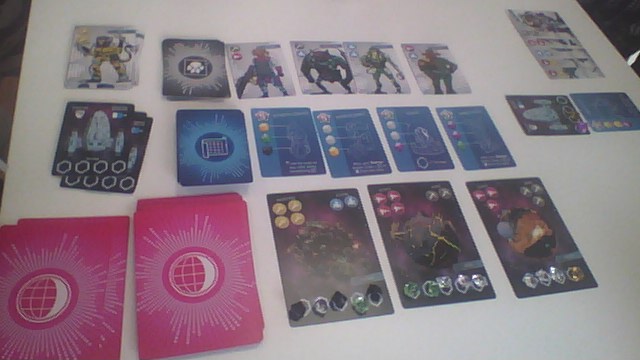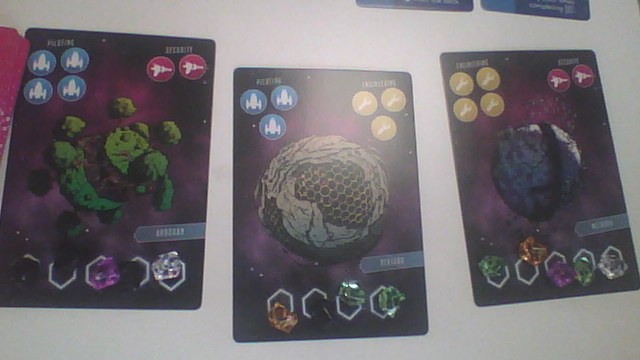 The game sees the players recruiting various space-faring engineers, to mine planets for different coloured minerals, which in turn are used to build spaceship parts. Some of the spaceship parts add new abilities, like more storage space to store minerals, or getting to draw extra cards at certain times, while others are just worth victory points at the end of the game.